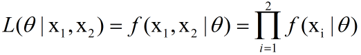 其中x1和x2为采样次数,f为映射函数,theta是未知参数,也就是我们要求的值,我们定义似然L为:
