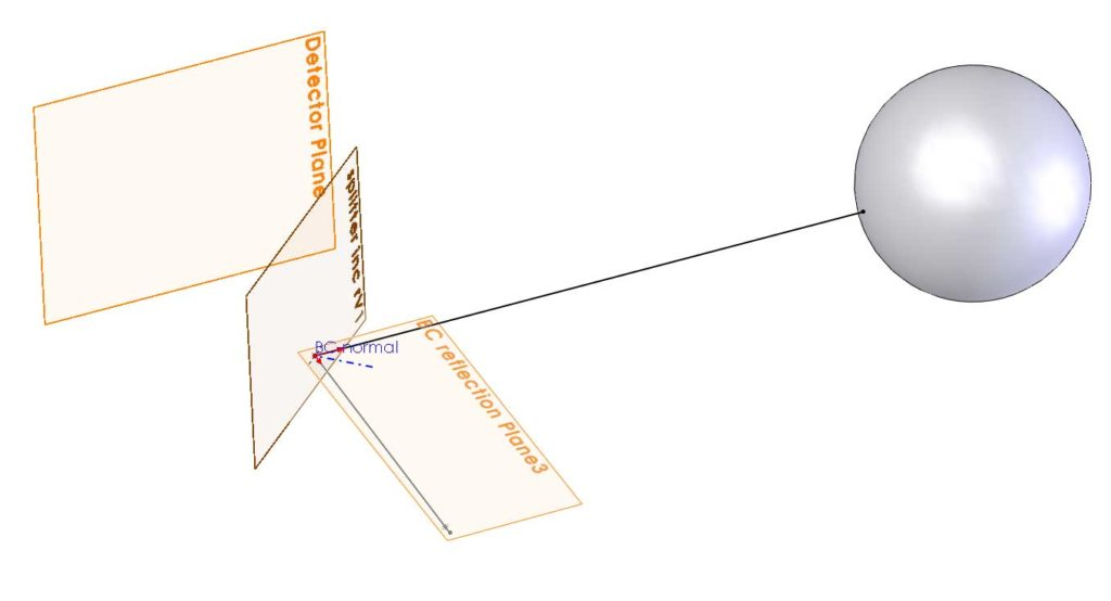 3D草图可用于模拟AMS干涉仪的射线路径。首先,需要对球体,分束器,激光源和检测器的几何元素进行建模。可以将球建模为实体,而将分束器和检测器建模为参考平面(请参见图6)。