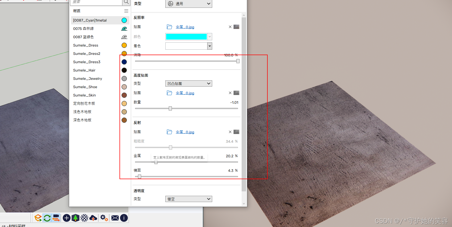 但这种花里胡哨的其实不咋好用,因为这样是直接100%的效果,改变的是材质编辑器中的金属百分比,我更喜欢打开材质编辑器自己手动拉这个金属百分比来调整对应的材质变化。