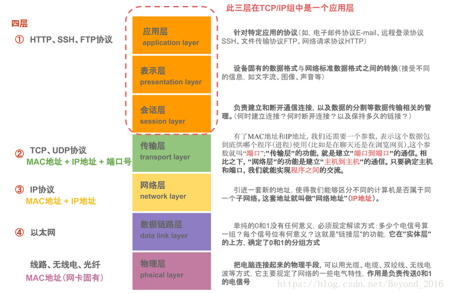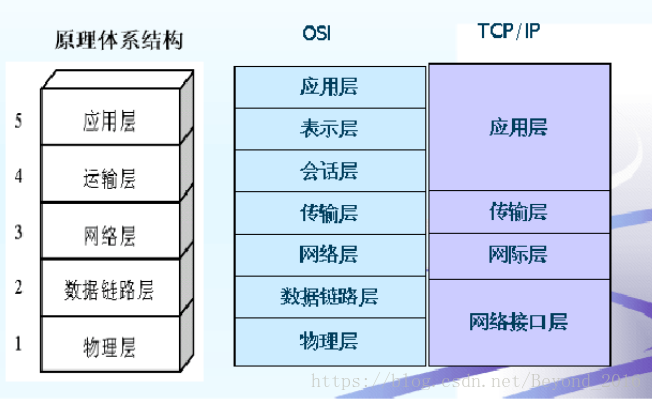 5层只是OSI和TCP/IP的综合,是业界产生出来的非官方协议模型,但是很多具体的应用。实际应用还是TCP/IP的四层结构。为了方便可以把下两层称为网络接口层。五层体系结构包括:应用层、运输层、网络层、数据链路层和物理层。