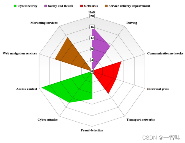 随着物联网的发展,传感器能够提供信息来模拟人类的生活习惯,并分析人类的安全和健康活动。例如,拥有智能药盒的老年人可以收到吃药通知。此外,智能家居中的传感器可以检测到老年人的习惯何时改变。这种变化可能意味着健康问题的症状。在道路交通方面,随着自动驾驶汽车的增加,人们对模拟驾驶员的行为越来越感兴趣,以帮助决策过程和减少危险情况。在本文中,安全与健康类别包括27篇重访论文(见表4)。主要的信息来源是不同的传感器,负责收集用户产生的信息和/或环境数据。这个主要类别被分解成两个次要类别:人类活动识别(HAR)和驾驶。下一节将介绍与此领域相关的不同方法和备选方案