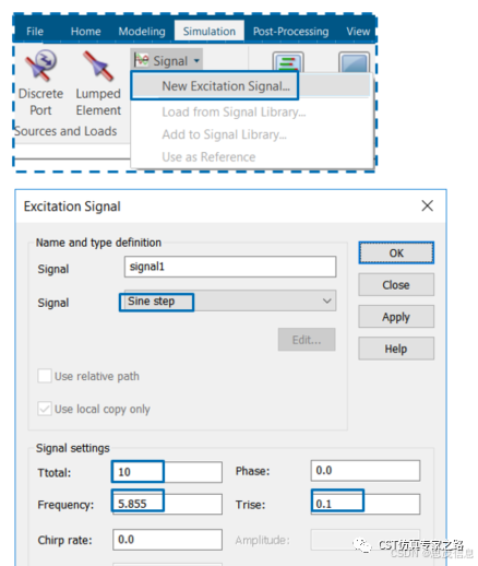 这里还有个Chirp rate选项可以用来设置啁啾信号,就是频率随时间改变,跟鸟叫似的。不用这个就是单频点结果,用了就是宽频的结果。当然这里是指后处理时傅里叶变换不考虑一开始的上升信号,只看稳态的话。