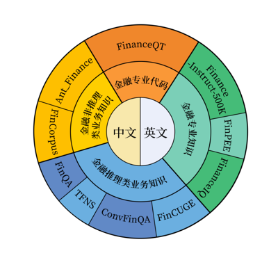 Fin-R1-Data 涵盖中英文金融垂直领域的多维度专业知识,并根据具体任务内容将其分为金融代码、金融专业知识、金融非推理类业务知识和金融推理类业务知识四大模块,可有效支撑银行、证券以及信托等多个金融核心业务场景。