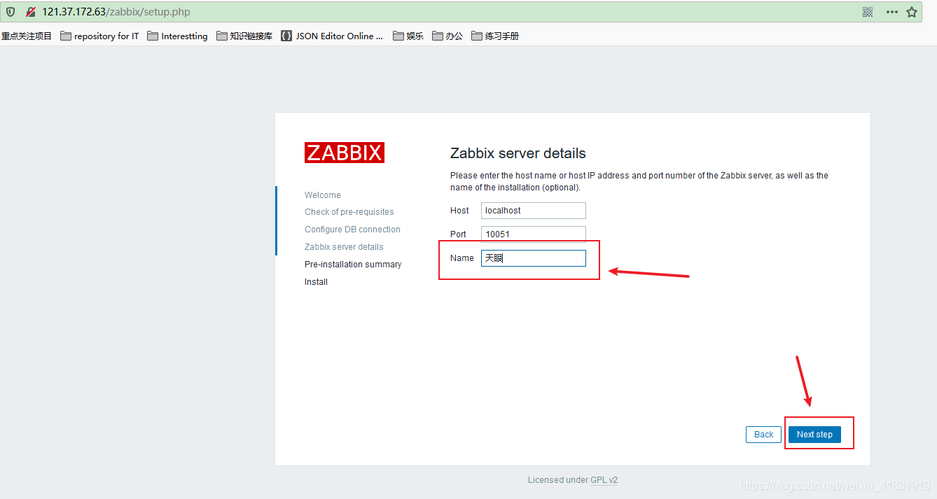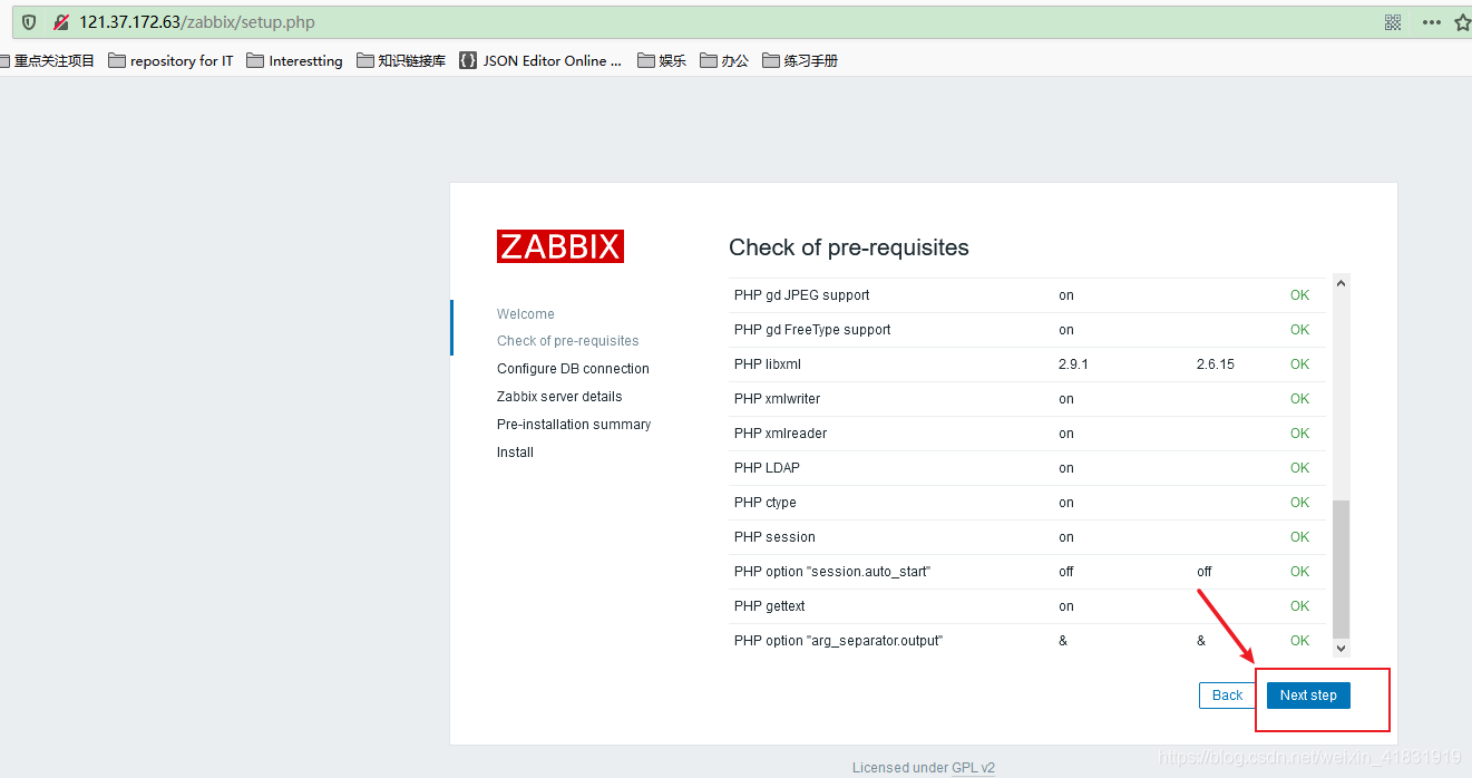 初始化地址http://121.37.172.63/zabbix/setup.php