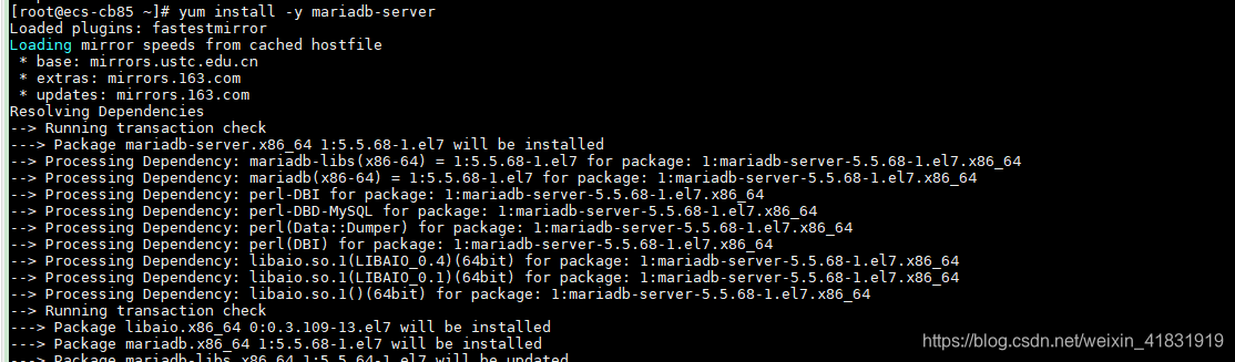 [root@ecs-cb85 ~]# yum install -y mariadb-server