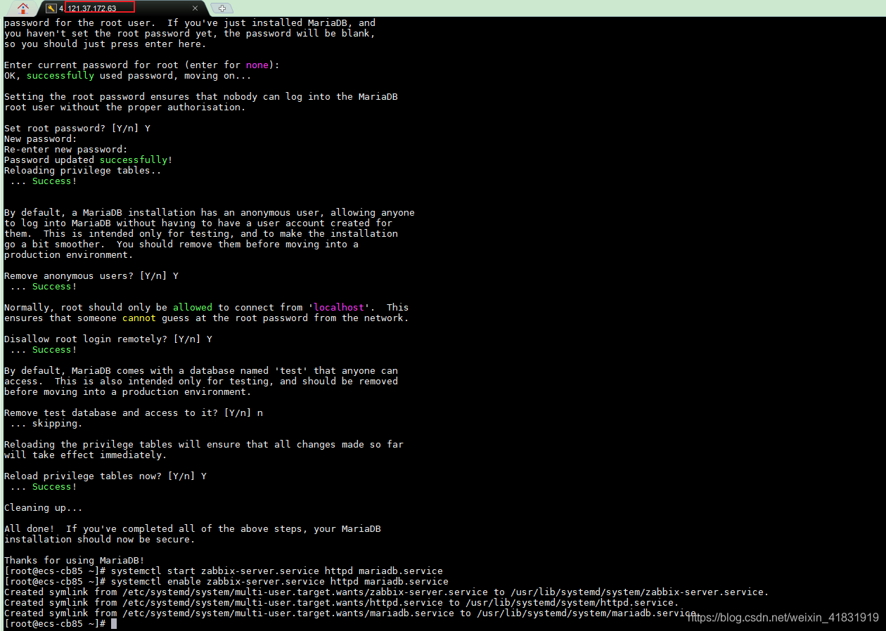 [root@ecs-cb85 ~]# systemctl enable zabbix-server.service httpd mariadb.service