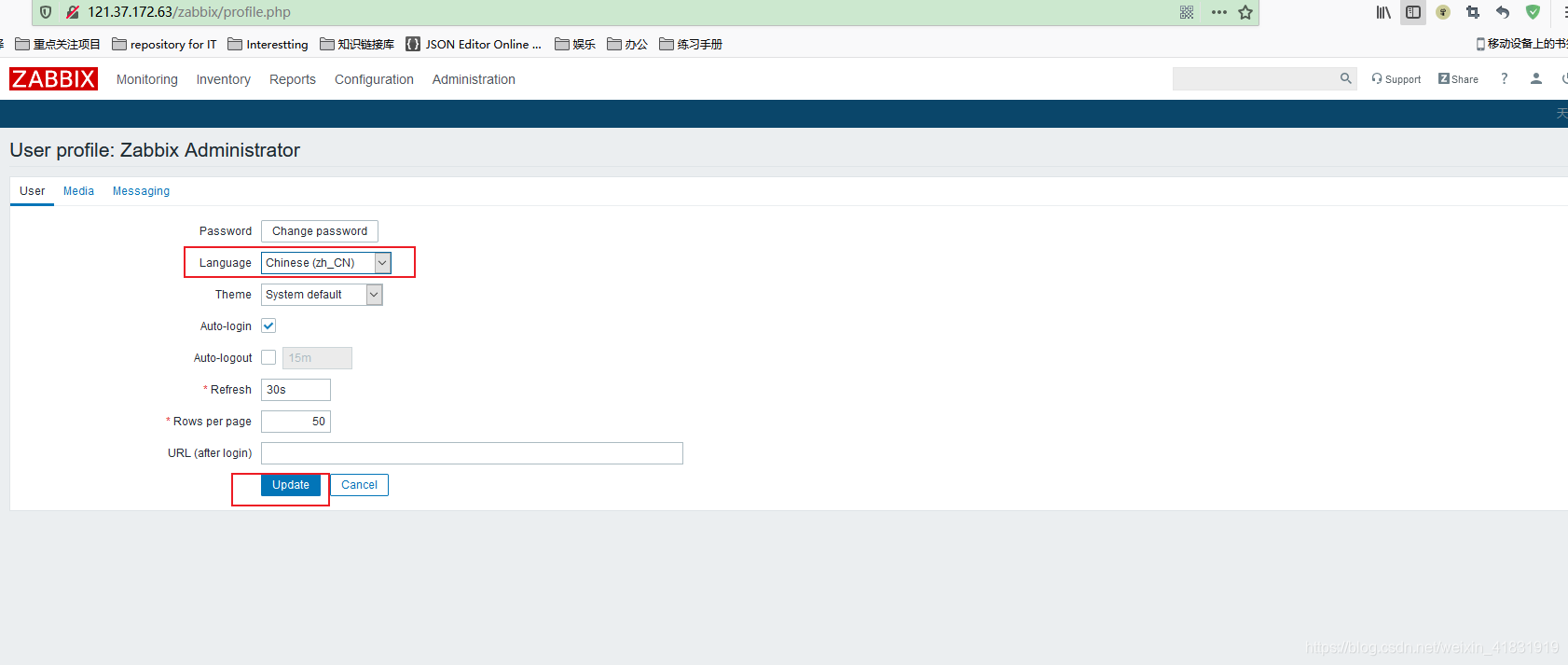 zabbix界面语言为中文
