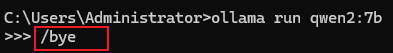 退出模型:在对话命令行中输入 /bye 即可