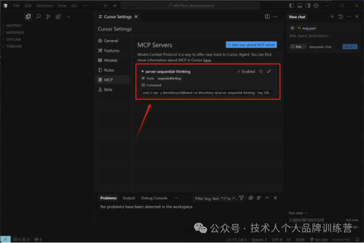 并写入如下内容:“server-sequential-thinking”: {“command”:“cmd”,