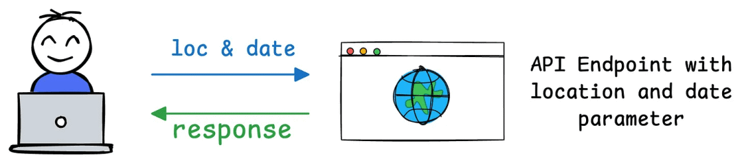 - 如果 API 最初需要两个参数(例如天气服务的位置和日期),用户集成应用程序会发送带有这些确切参数的请求。