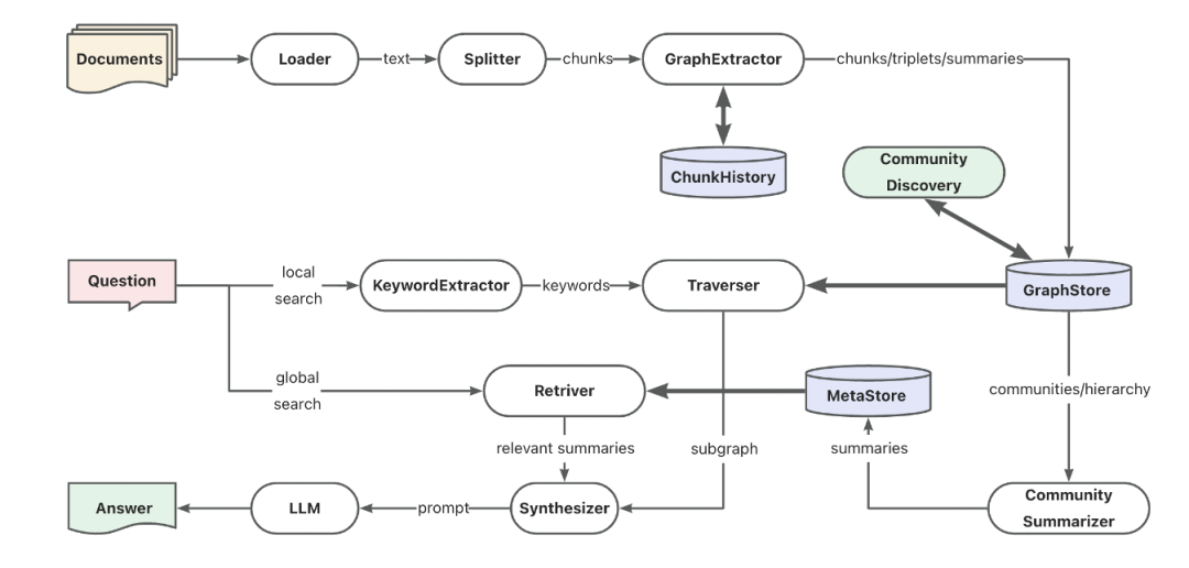 社区摘要:先把小区居民的关系网理清楚,再给每个邻里圈做个简介。有人问路时,各个邻里圈提供线索,最后整合成最完整的答案。