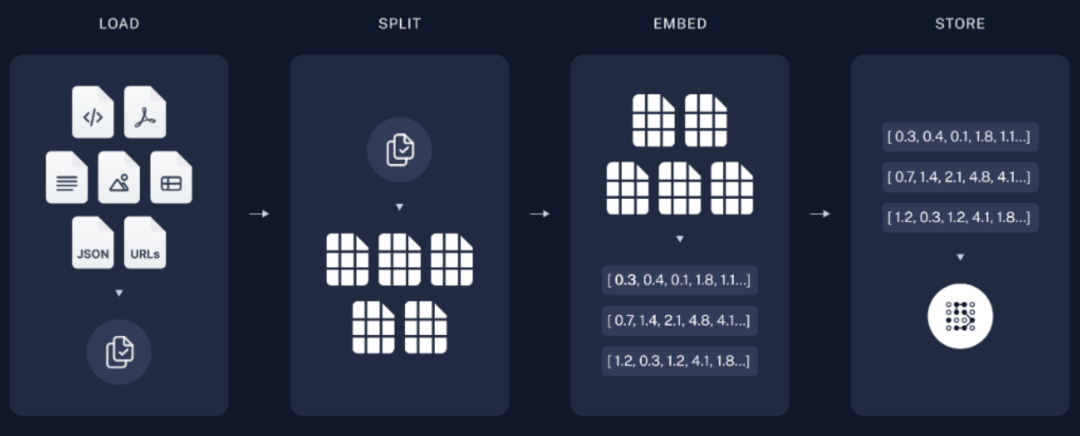 - 向量:对拆分的数据块,进行 Embedding 向量化处理。