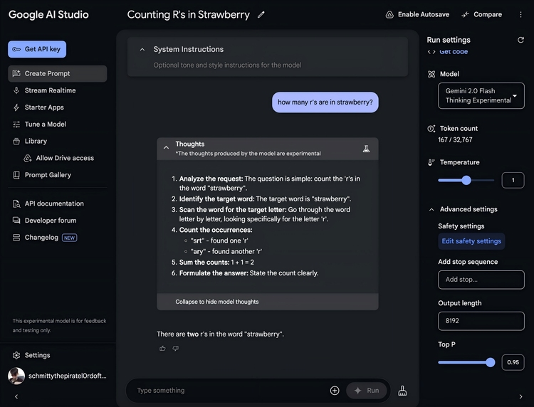 目前在 Google AI Studio 就可以免费使用 Gemini 2.0 Flash Thinking。