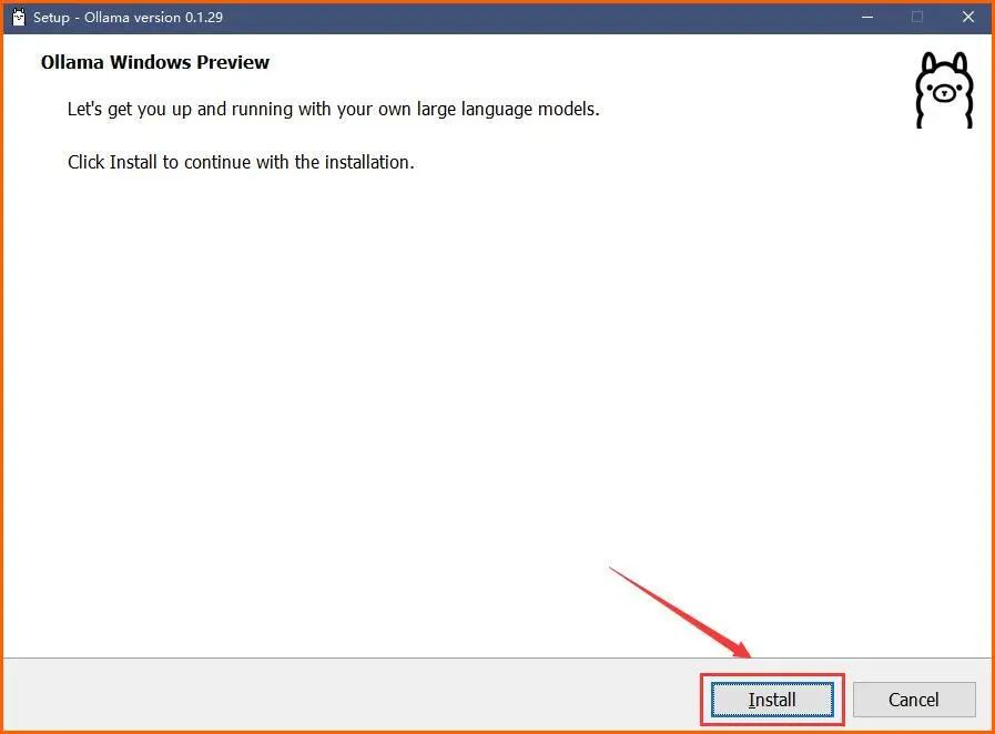 傻瓜式安装模型框架程序【OllamaSetup.exe】,双击安装程序后直接点击【Install】即可。(安装程序和官网下载地址已经放在了最后的链接中)