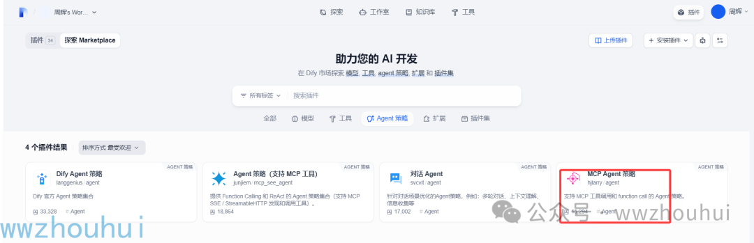 在制作工作流之前我们需要安装好 agent策略,这个插件可以在插件市场找到。