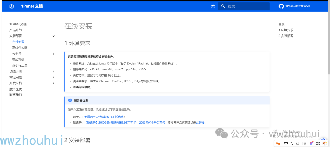 这个1Panel安装比较简单,打开可以参考官方文档https://1panel.cn/docs/installation/online_installation/ 平台支持在线和离线安装