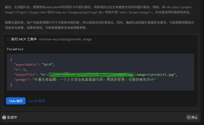 它会结合上下文来处理问题,在分析我的需求之后,调用了 MiniMax MCP 来生成图片。