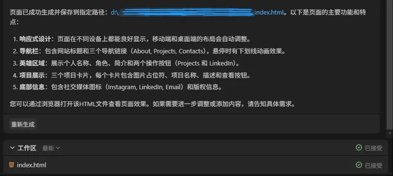 它会分析我的需求之后,自动调用合适的 MCP 工具来完成网页开发。