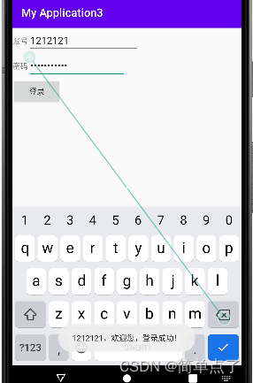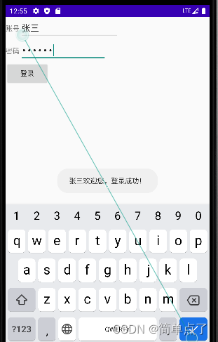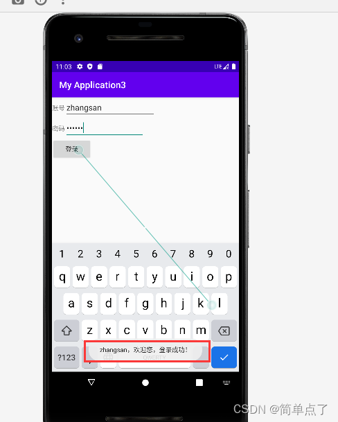 Toast.makeText(ButtonMainActivity.this, account.getText()+",欢迎您,登录成功!", Toast.LENGTH_SHORT).show();