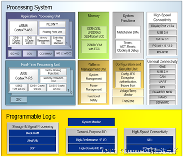 核心处理器:带 CoreSight™ 的双核 ARM® Cortex®-A53 MPCore™,带 CoreSight™ 的双核 ARM® Cortex™-R5