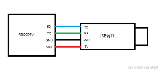 将天线,SIM卡装到4G模块上(按照模块上的插卡方向操作),按图示方式接好线,注意串口是交叉连接。