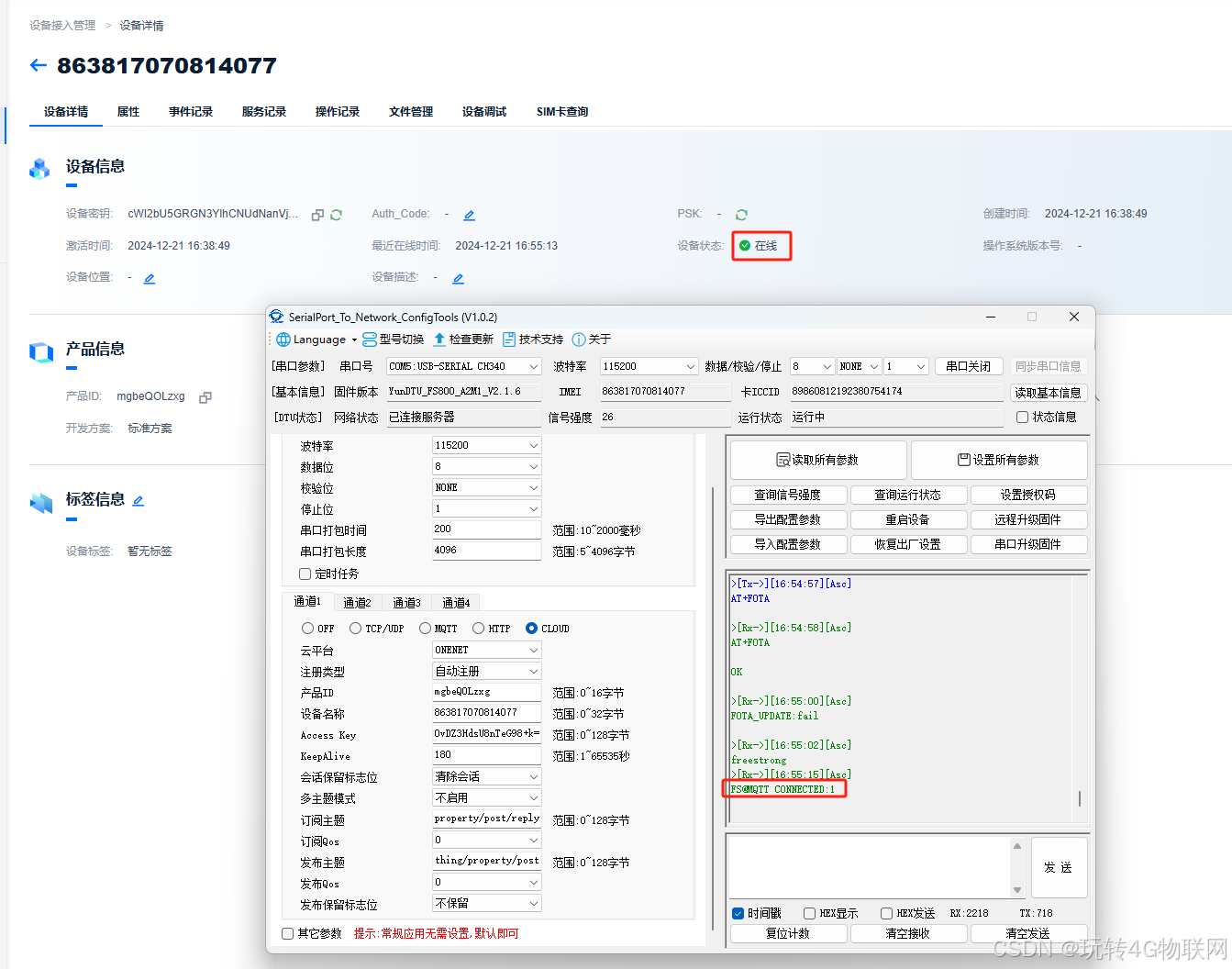 FS800DTU连接OneNET云平台一型一密教程。