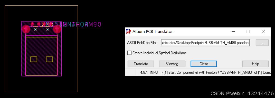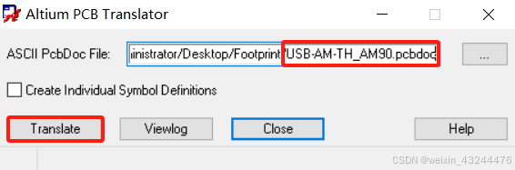 选择需要转换的PCB ASCII File格式的AD封装,点击Translate进行转换;