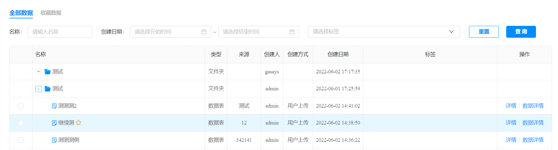 比如下面这个表格选择器,在文件夹里面选择用户上传的表。基本项目所有业务都是需要选表的,所以这个组件复用频率很高。