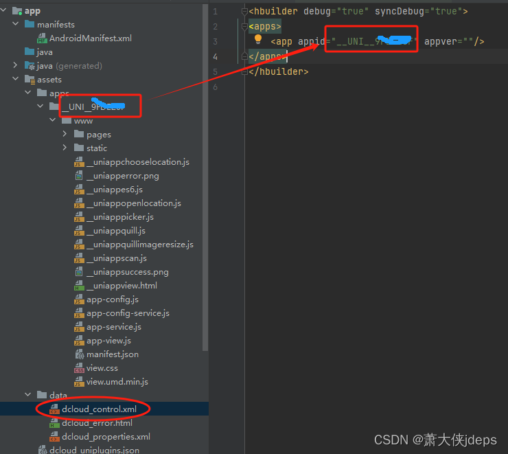 4、把打包的文件拷贝到 安卓开发的app/assets/apps/{appid}下。