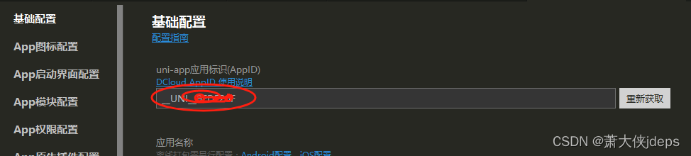6、需要配appKey 不然运行会提示没有配,这步需要导dcloud官网