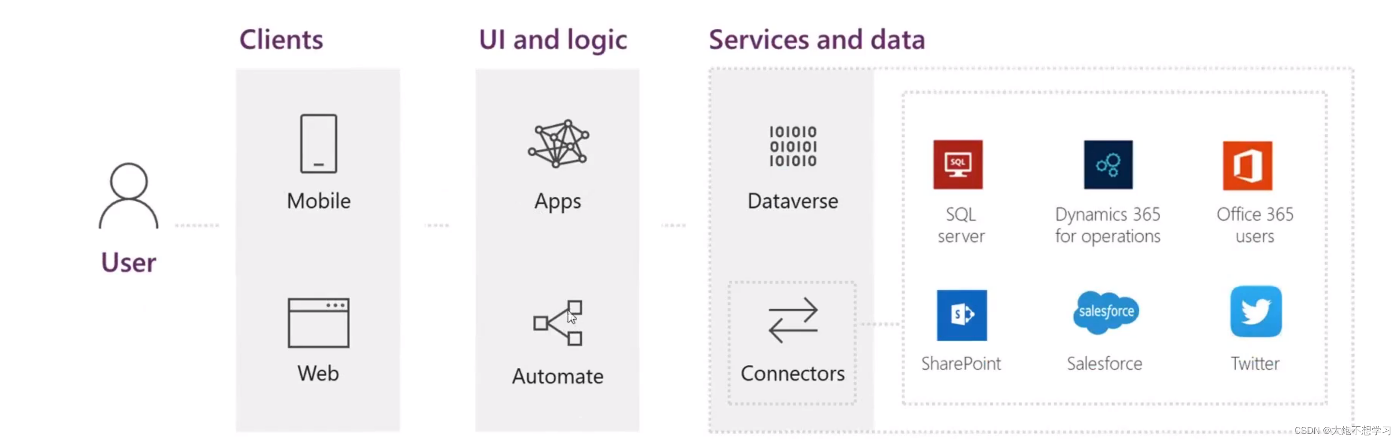 - 模型驱动应用-->已经通过数据库或者excel表格或者是SharePoint list等等已经形成了一个业务模型,那么在这个模型的基础上,可以快速根据这个模型自动构建一个可视化UI