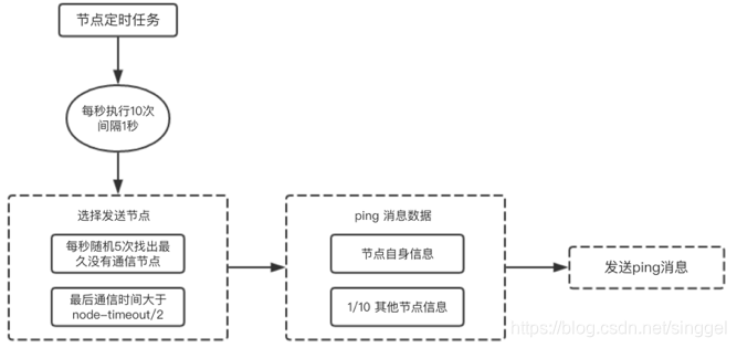(1)选择发送消息的节点数量集群内每个节点维护定时任务默认每秒执行10次,每秒会随机选择5个节点找出最久没有通信的节点发送ping消息,用于Gossip信息交换的随机性。