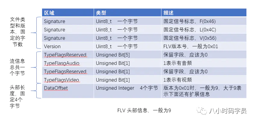 前面的文章已经介绍过图像、音频、字幕相关知识,将图像、音频、字幕封装在一起,就形成了我们常见的视频。本篇文章主要介绍下FLV(后文中将介绍TS和MP4)视频封装格式。1.FLV的封装格式FLV(Flash Video),Adobe公司设计开发的一种流行的流媒体格式,由于其视频文件体积轻巧、封装简单等特点,使其很适合在互联网上进行应用。除了播放视频,在直播时也可以使用。采用FLV格式封装的文件后缀为