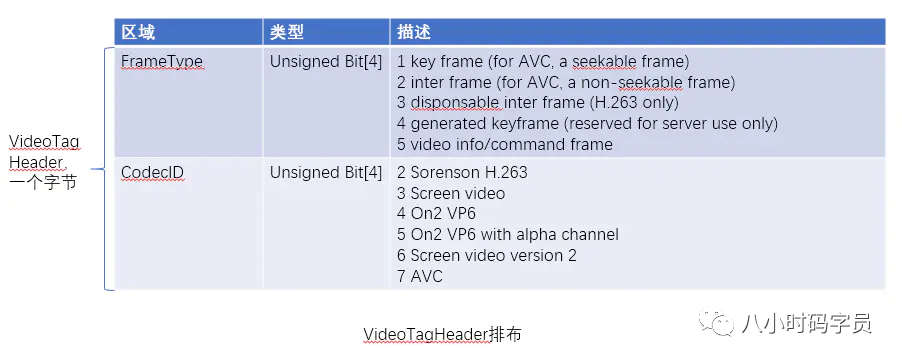 Video Tag 由一个字节的VideoTagHeader 和 Video数据区部分组成