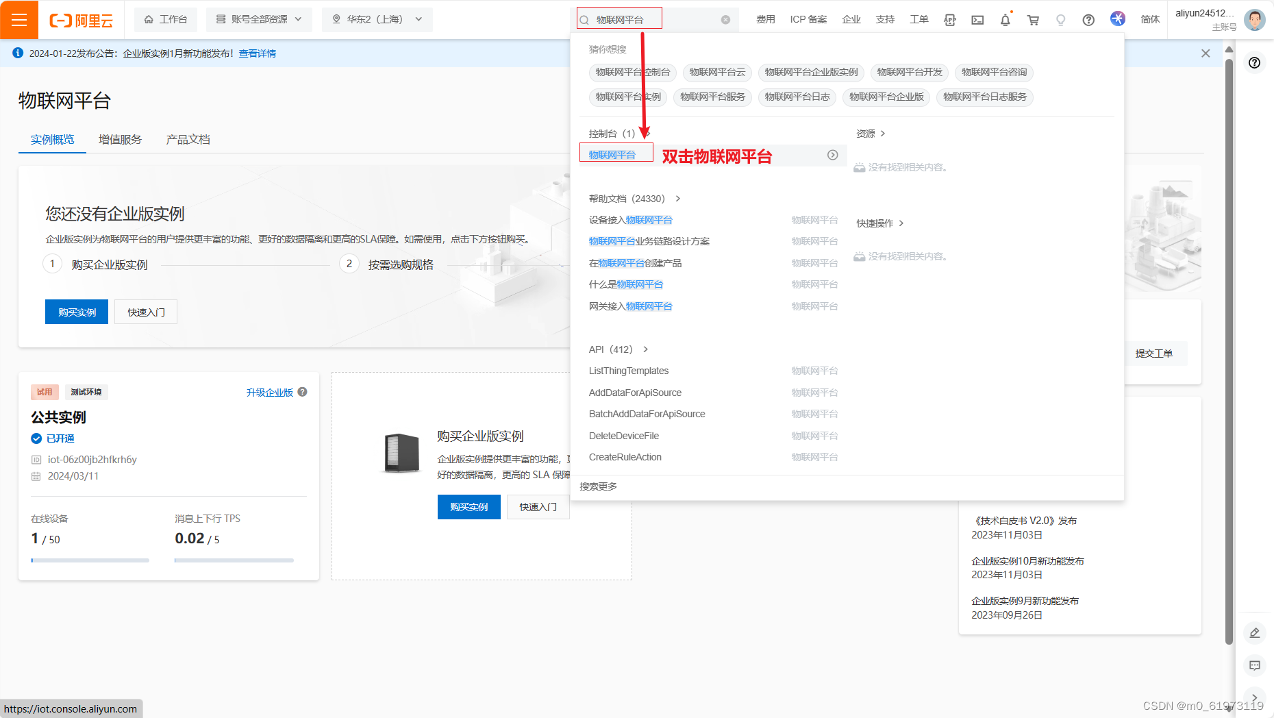 第二步:搜索物联网平台