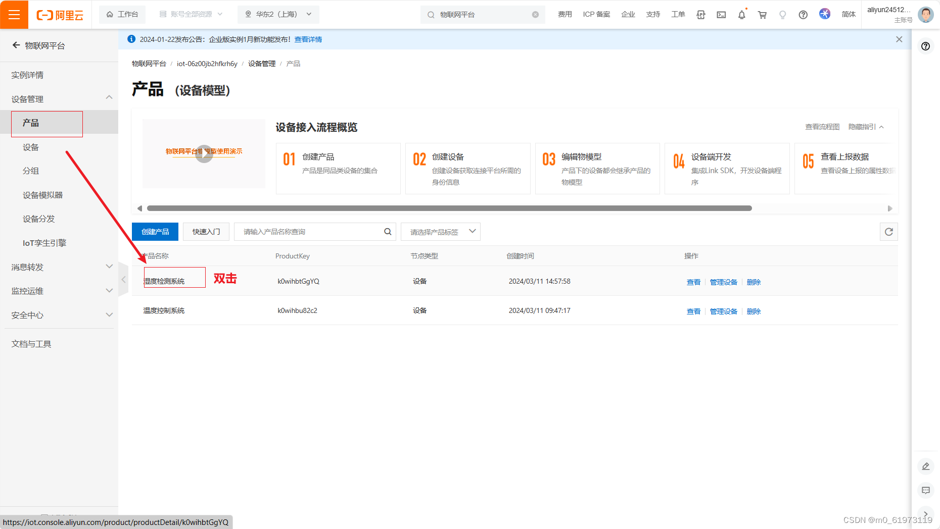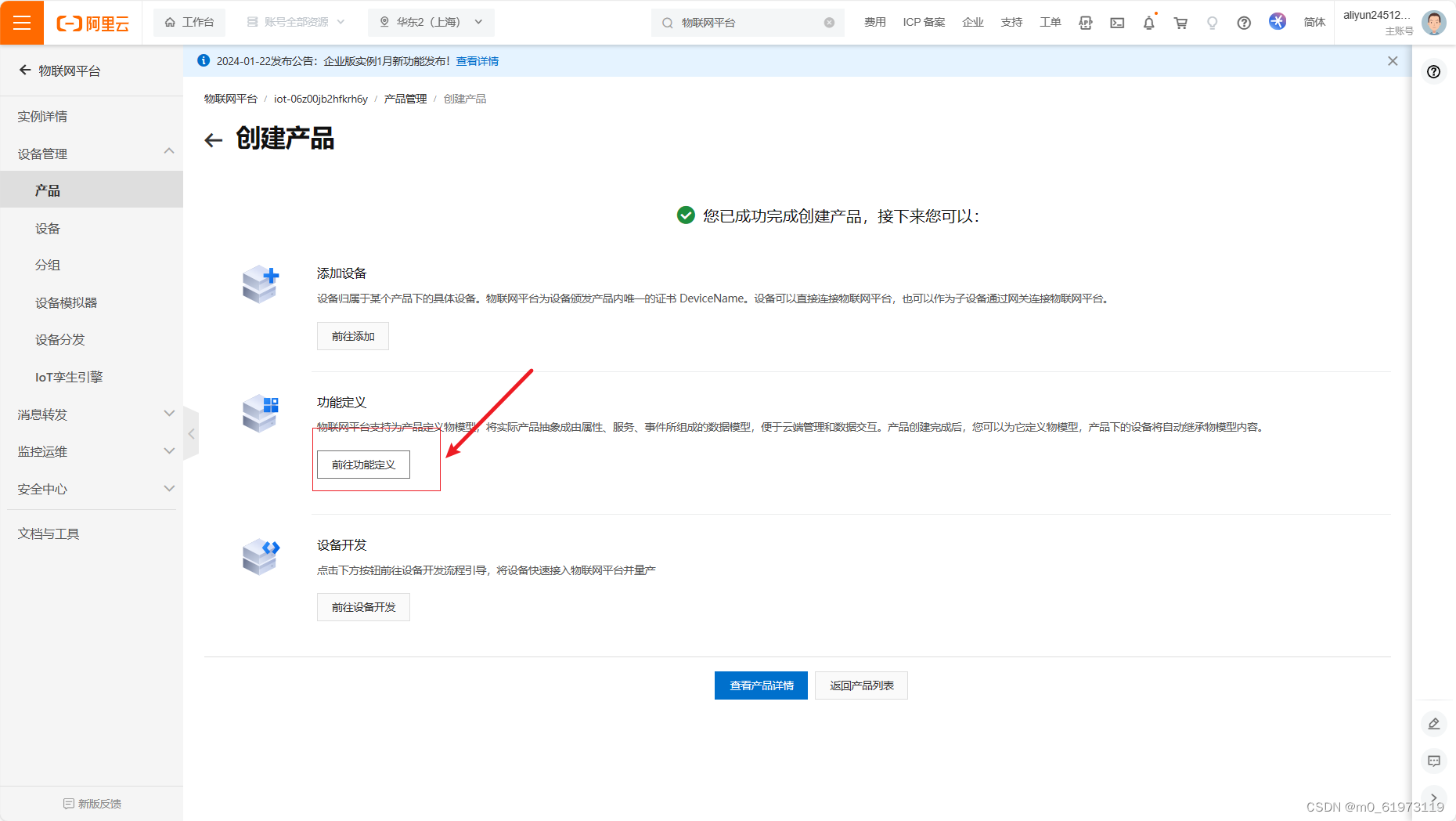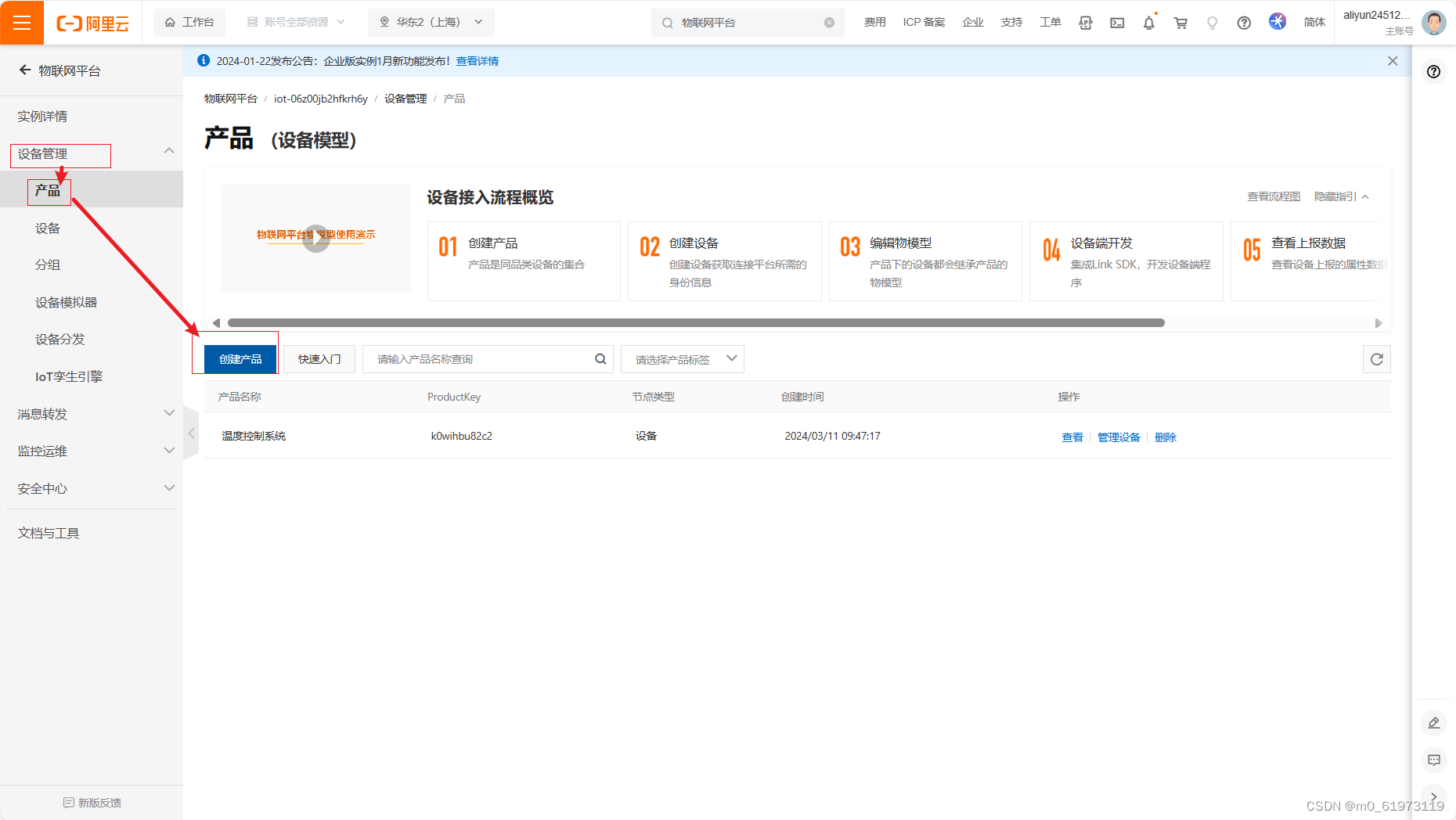 一、阿里云物联网平台搭建