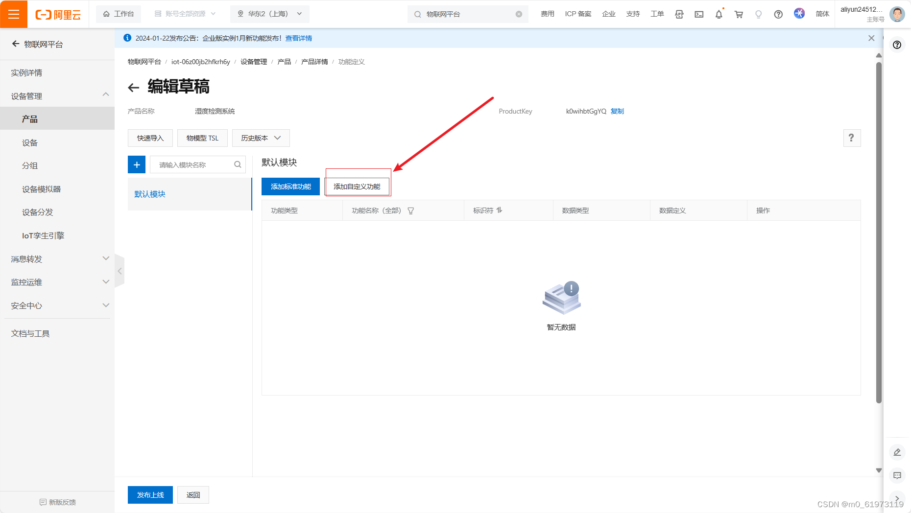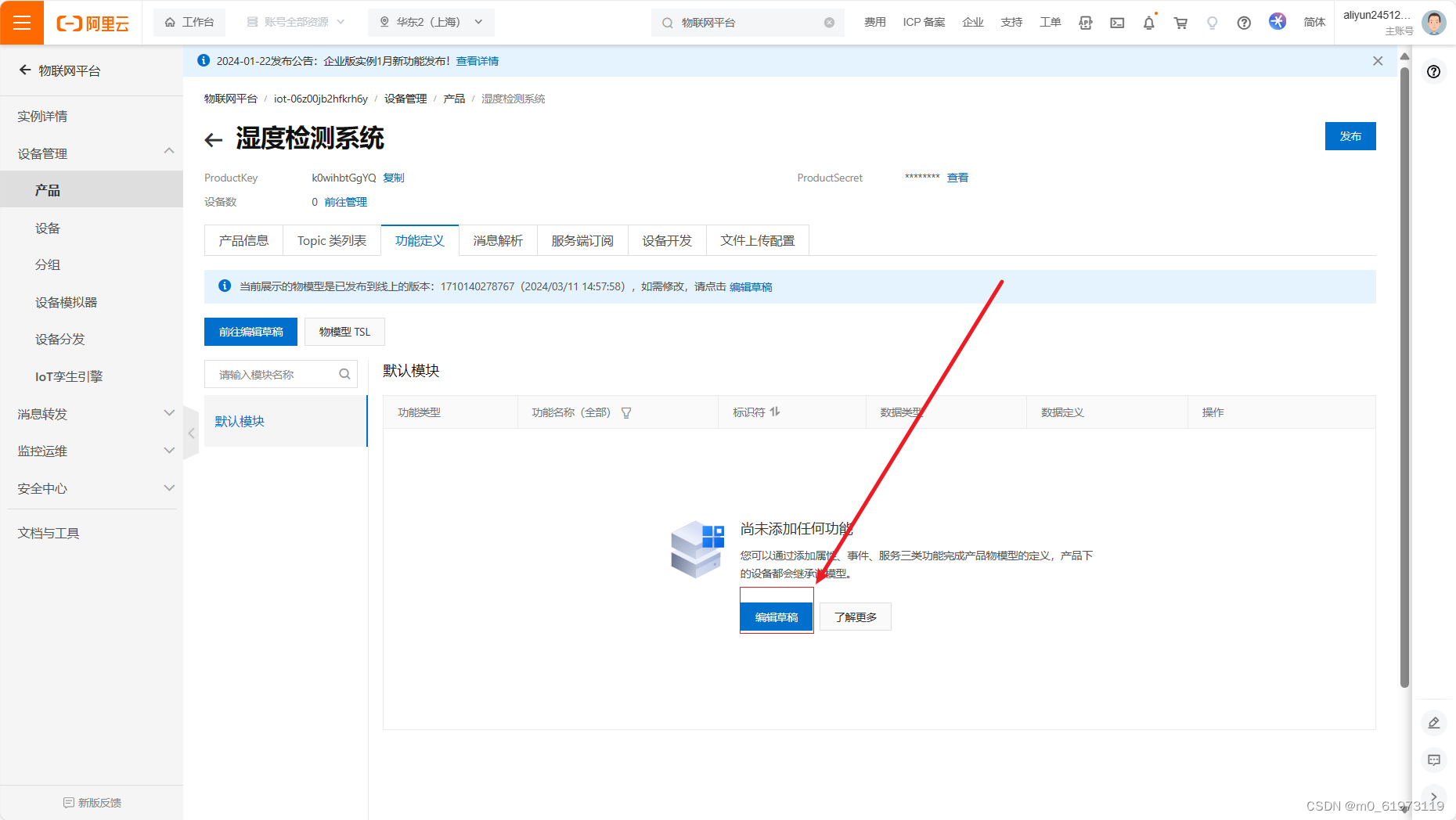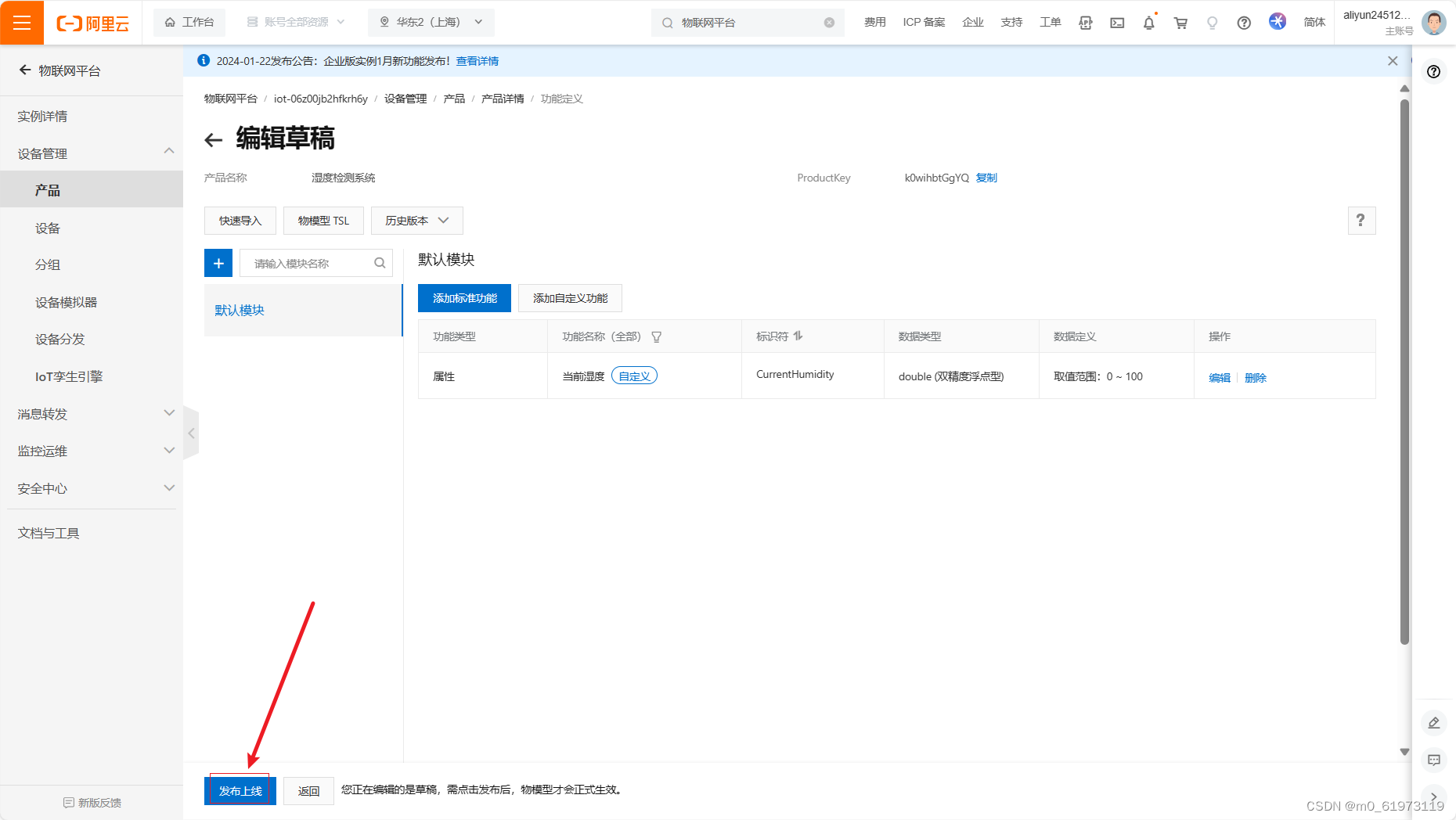 一、阿里云物联网平台搭建