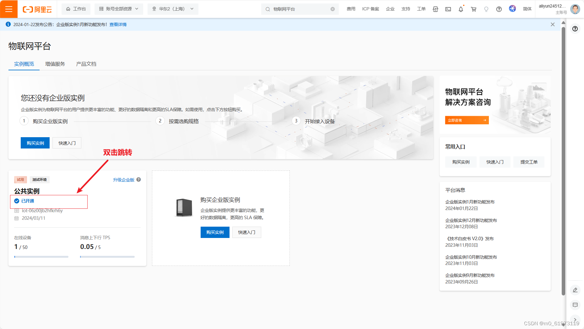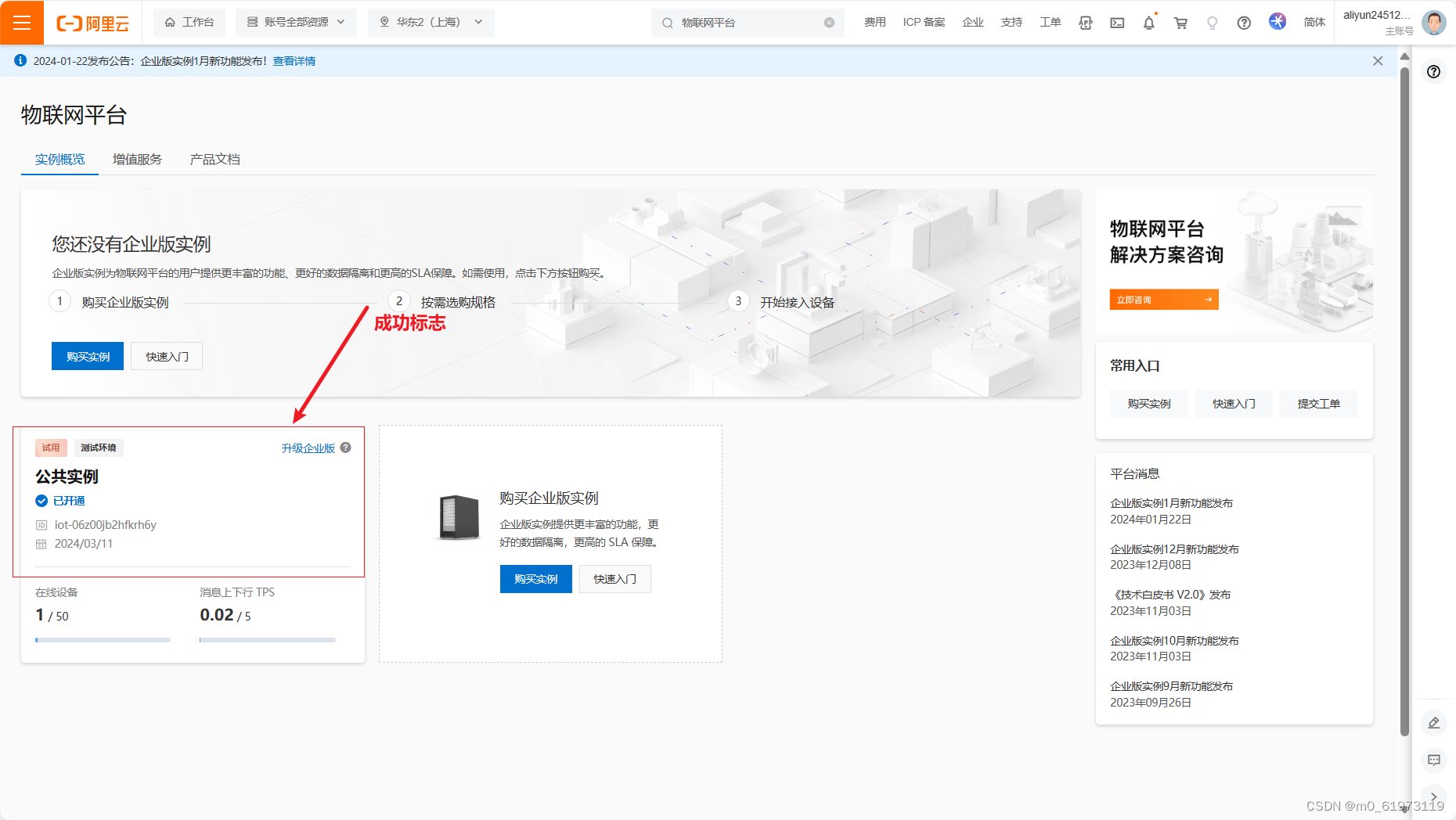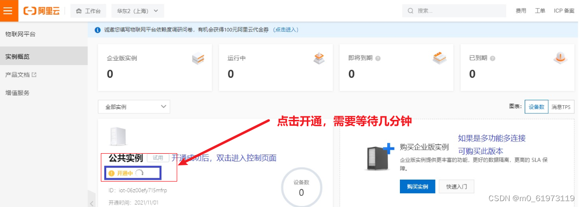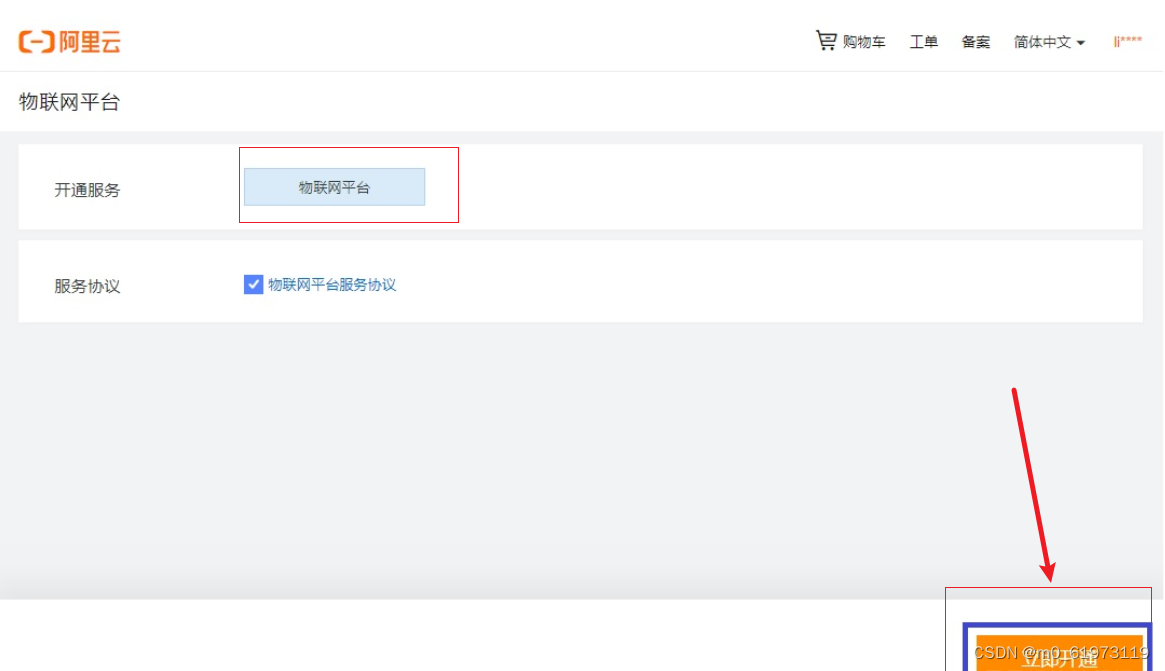 第三步:开通物联网平台