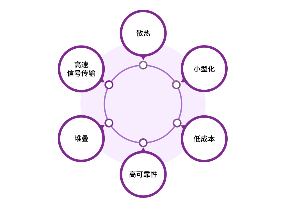 可支持高速电信号传输的封装技术也成为了一种重要发展趋势,因为封装会限制半导体产品的速度。例如,将一个速度达每秒20千兆 (Gbps) 的半导体芯片或器件连接至仅支持每秒2千兆(Gbps) 的半导体封装装置时,系统感知到的半导体速度将为每秒2千兆 (Gbps)。由于连接至系统的电气通路是在封装中创建,因此无论芯片的速度有多快,半导体产品的速度都会极大地受到封装的影响。这意味着,在提高芯片速度的同时,还需要提升半导体封装技术,从而提高传输速度。这尤其适用于人工智能技术和5G无线通信技术。鉴于此,倒片封装7和硅通孔(TSV)8等封装技术应运而生,为高速电信号传输提供支持。