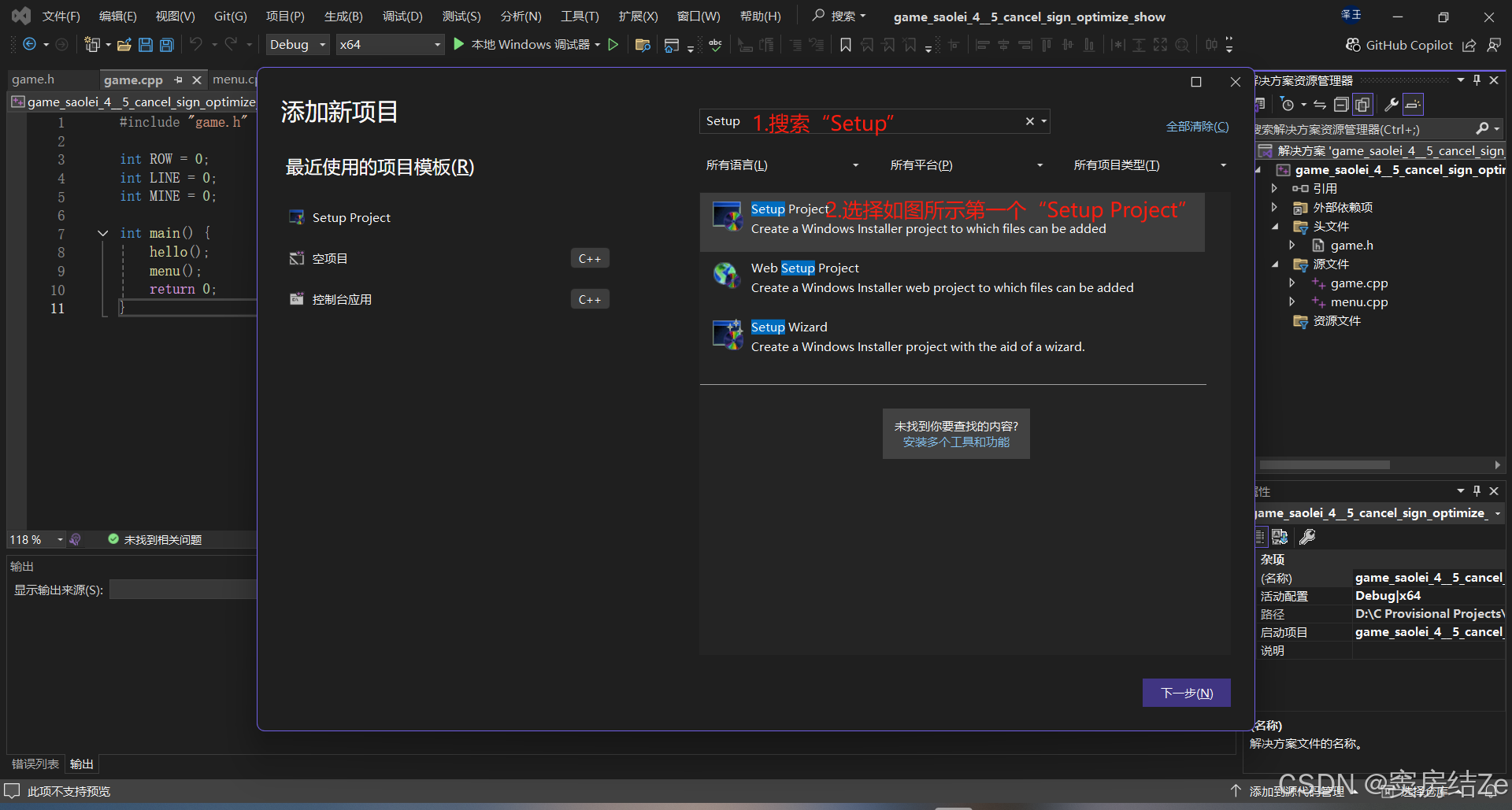 2.搜索“Setup”-选择如图所示第一个“Setup Projects”-下一步