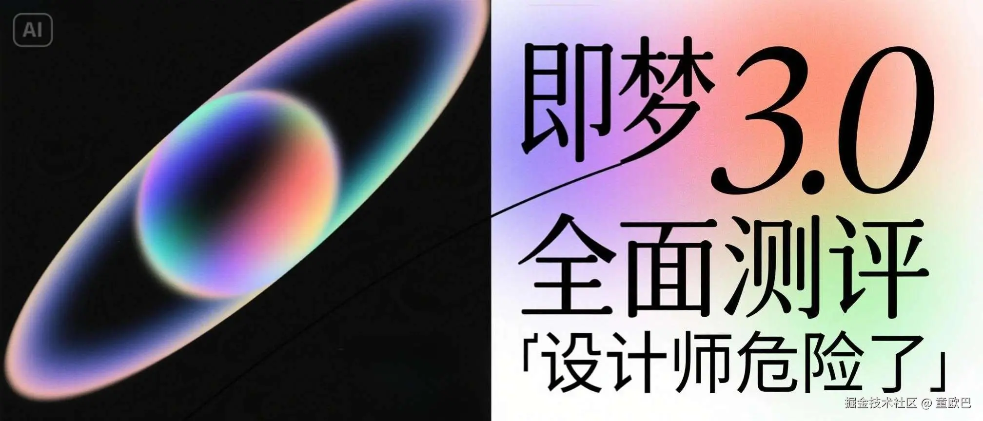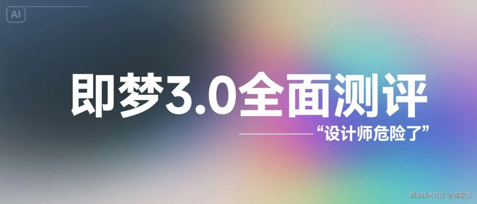 提示词:封面设计,标题"即梦3.0全面测评”,副标题“设计师危险了”,先锋艺术风格,创意且具有冲击力,排版艺术,彩色弥散渐变简约柔和背景