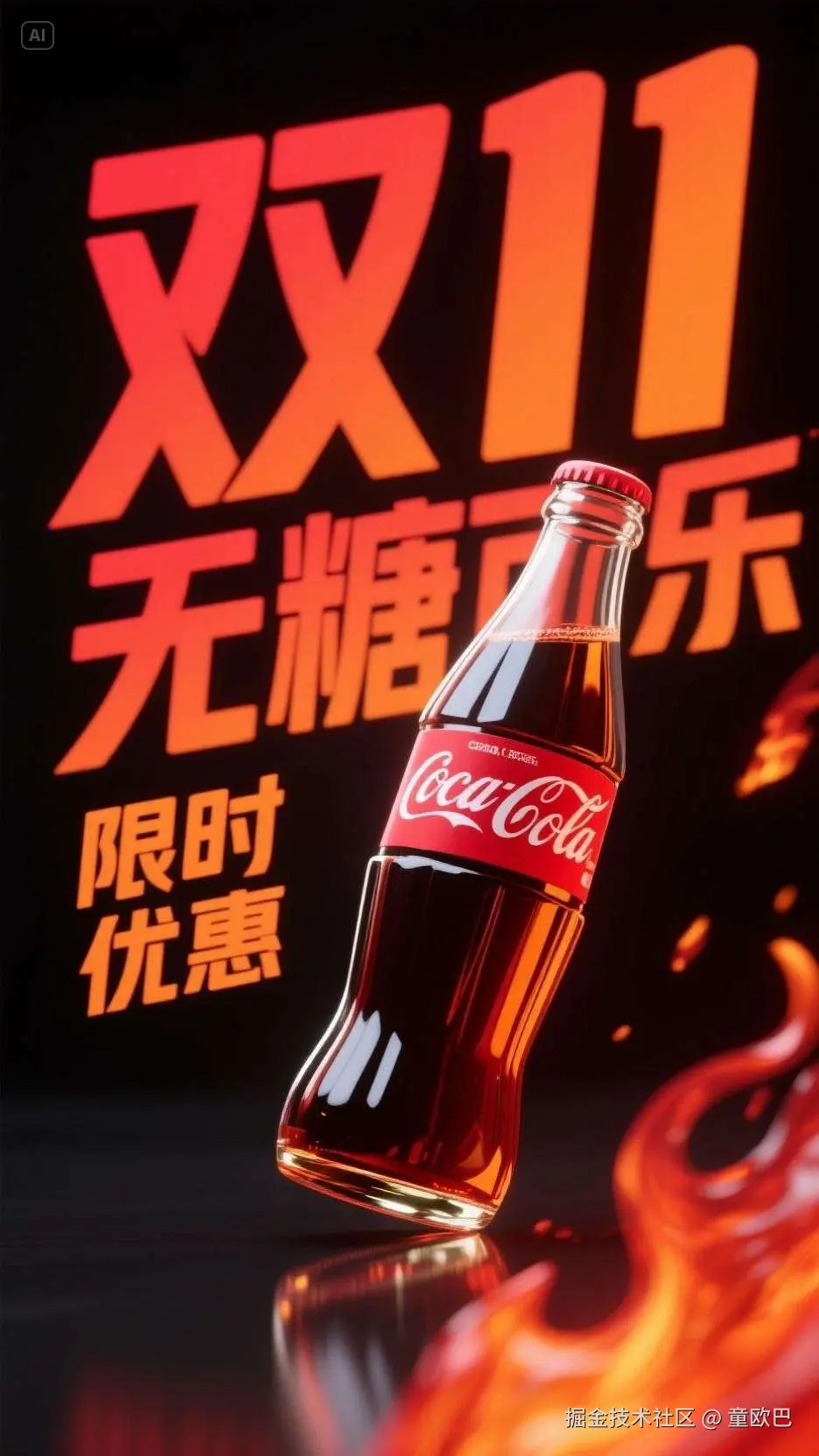 提示词:无糖可乐双11电商海报