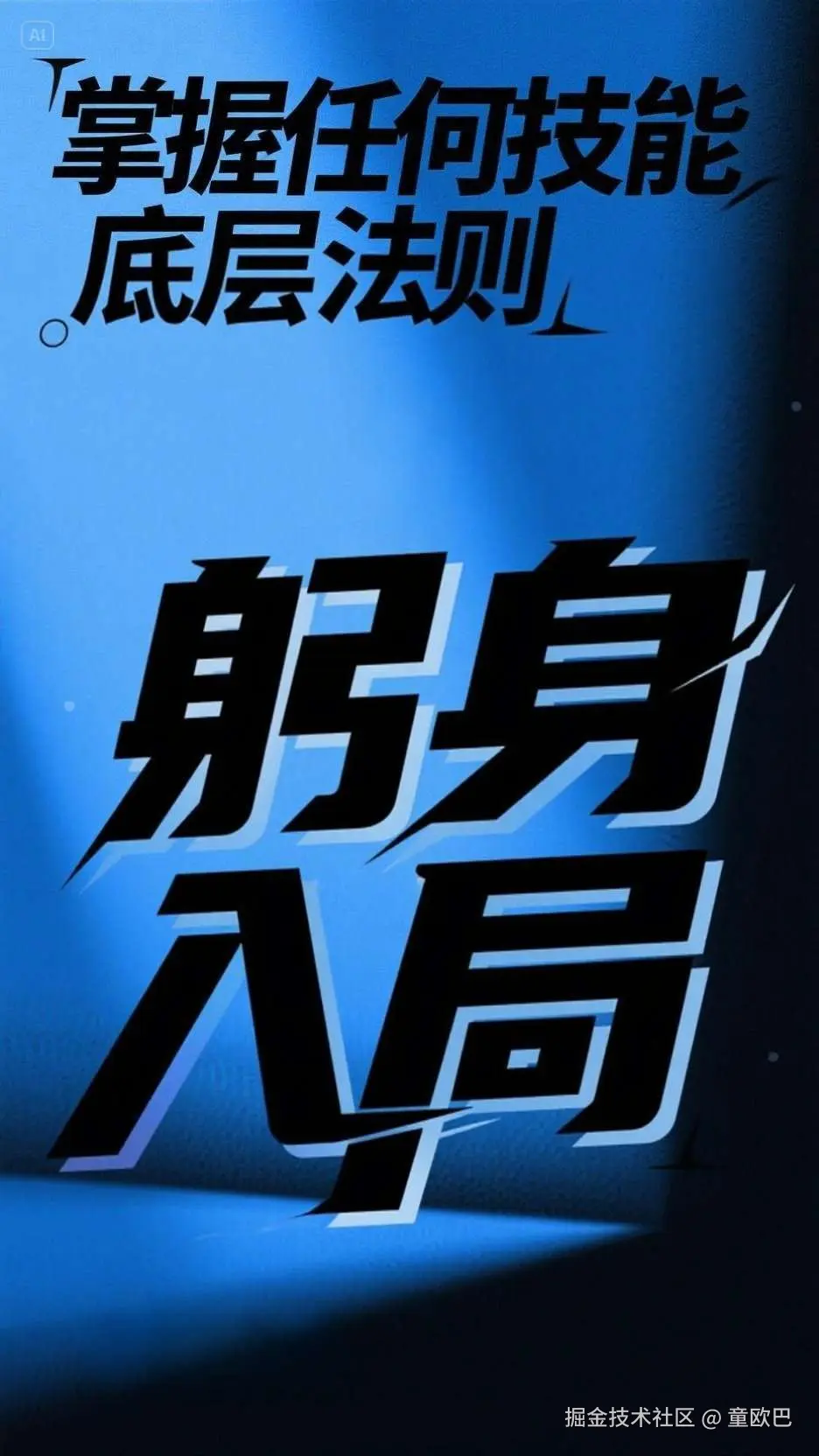 设计一张海报,字体为创意黑体,内容"掌握任何技能的底层法则躬身入局"