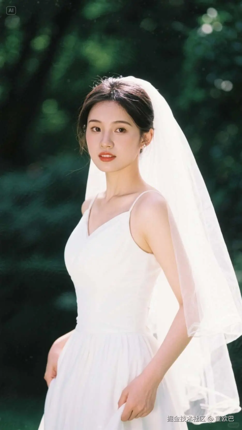 提示词:胶片摄影,穿着婚纱的女人