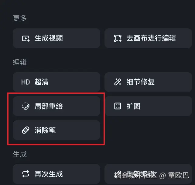 如果只是局部内容不满意,也可以先点击图片,再点击右侧编辑中的局部重绘或者消除笔。