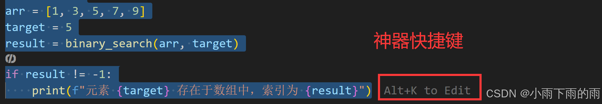 选中我们要修改的代码之后就能看到一个灰色的提示文字,上面写着ALT+K to Edit代表按住这个快捷键进行修改,点击完毕后最上方就能看到,我们输入要修改的提示词,直接点击提交即可。