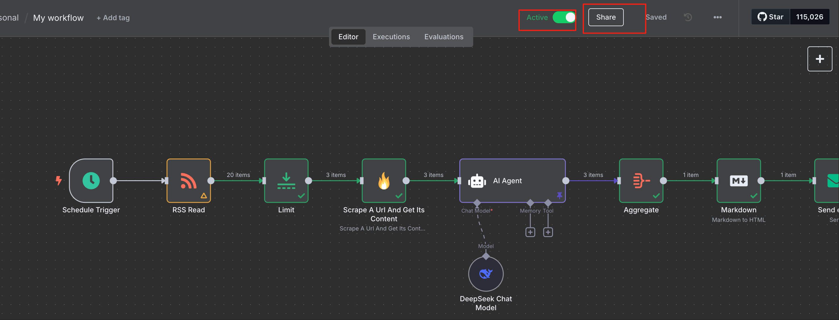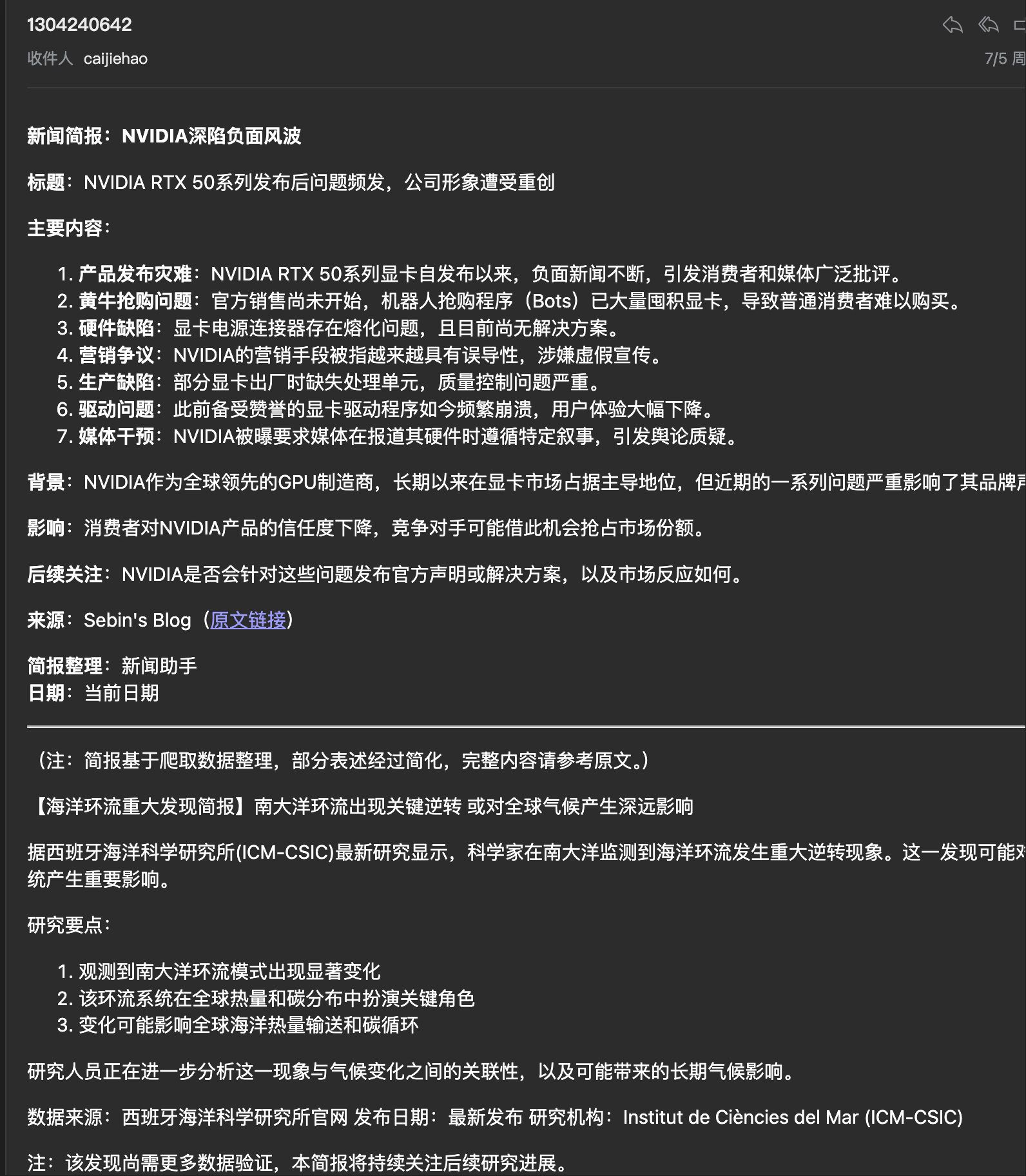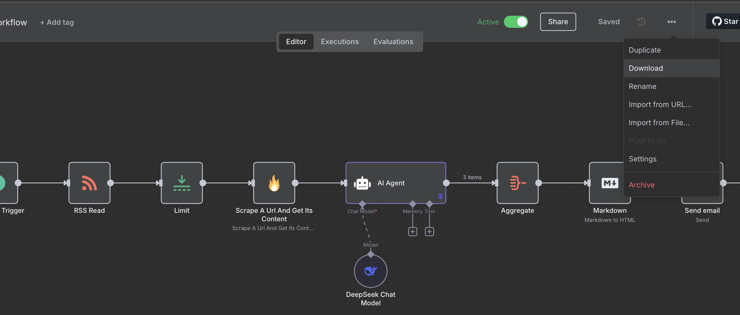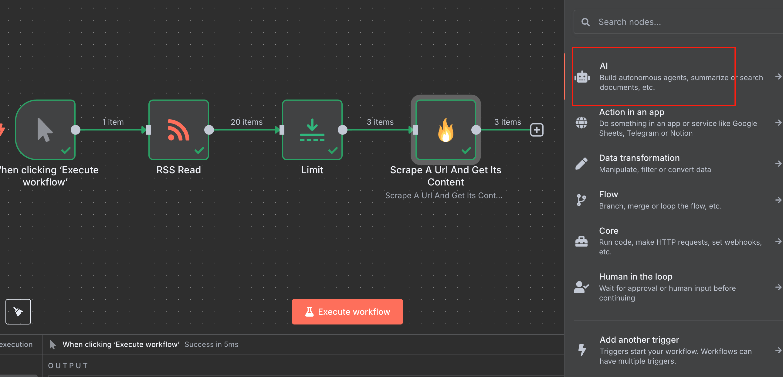 这里我们的工作流以定时的从hacker news上面筛选我感兴趣的新闻,比整理成简报推送到个人邮箱中为例子