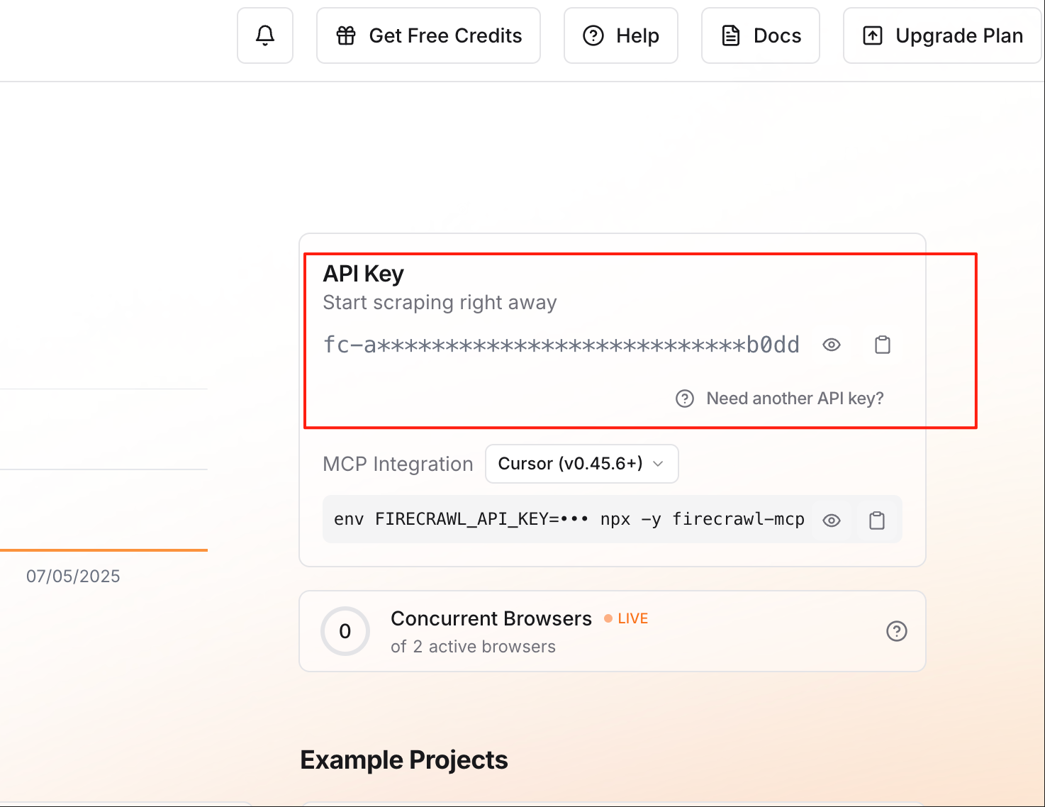 api key每个月都有免费额度,你也可以选择本地部署Firecrawl,这样就可以无限使用了