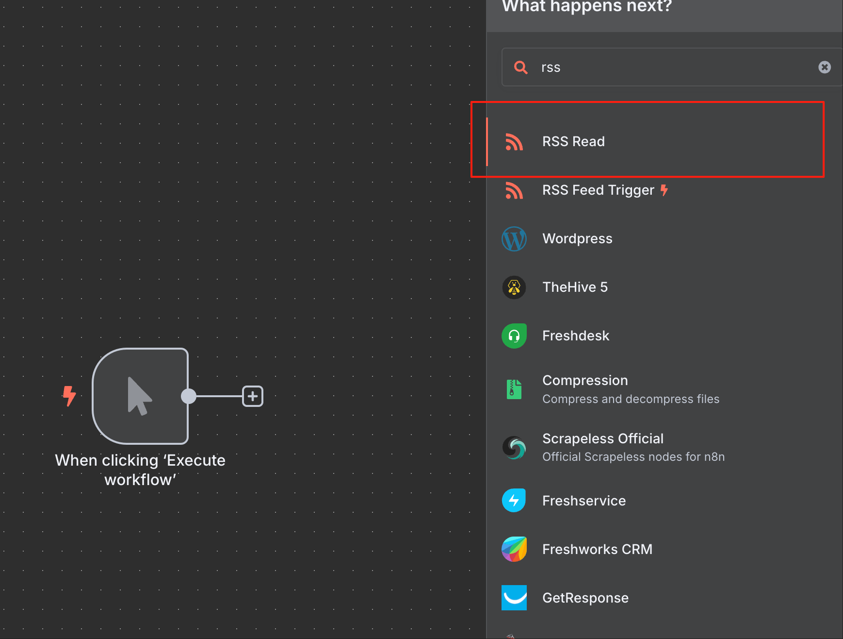 点击加号,这里我希望使用RSS的方式获取,右边搜索RSS,RSS是一种消息订阅机制