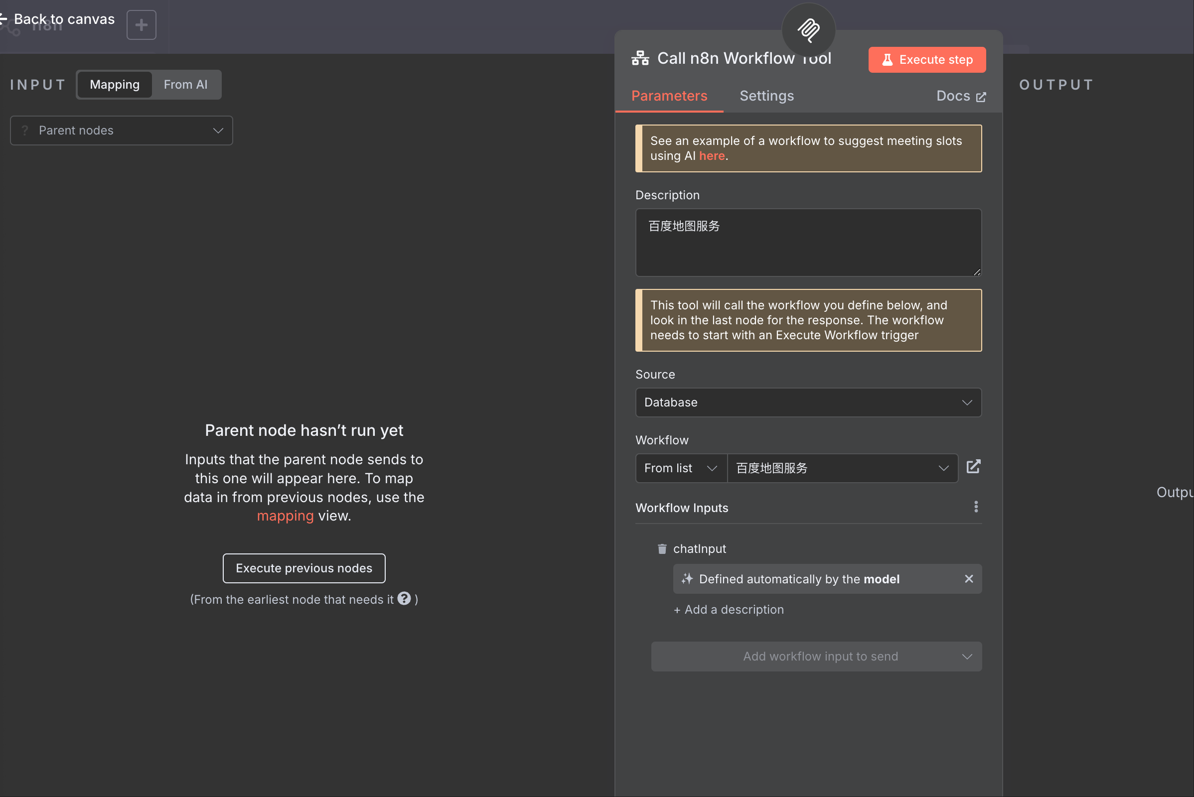 然后修改Call n8n Workflow Tool,让ai自行决定调用工作流